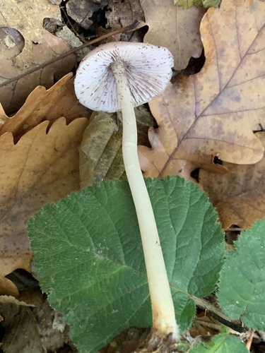 Der Stiel ist rosa-rot-weiß. Besondere Merkmale: faserig, hohl, Wurzelbasis.