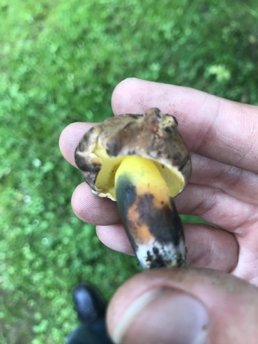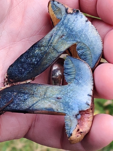 Der Schwarzblauender Röhrling (Cyanoboletus pulverulentus) ist ein Pilz mit dem Speisewert ausgezeichnet. Die Hauptsaison erstreckt sich von Juni bis November. Er wächst bevorzugt auf Boden.
