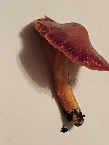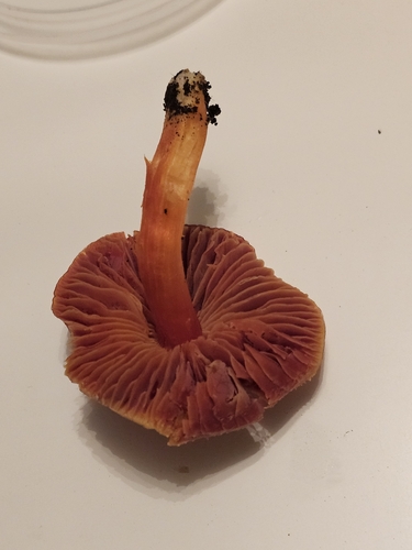 Der Stiel ist orange-rot-gelb. Besondere Merkmale: faserig, brüchig, genattert, hohl.