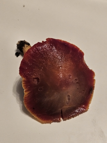 Die Unterseite zeigt Farben von weiß/gelb/orange. Sie sind angewachsen.