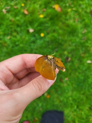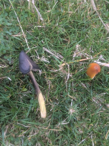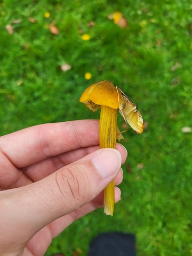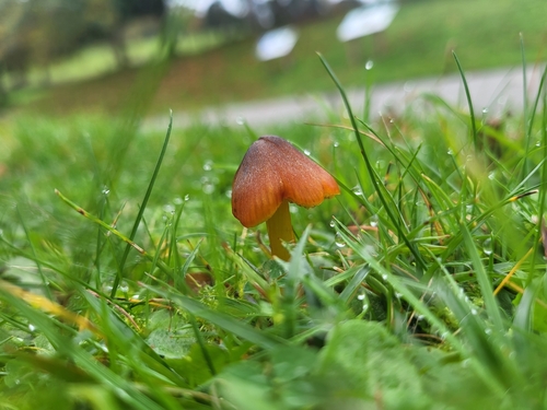 Der 2–7 cm breite Hut ist braun-gelb-rot-orange gefärbt. Die Form ist meist kegelförmig, schirmförmig, andere. Er ist hygrophan (Die Hutfarbe ändert sich bei Feuchtigkeit).