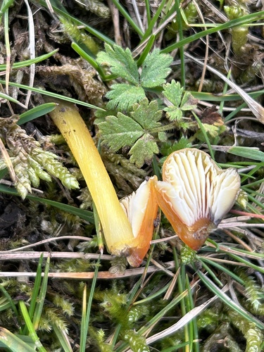 Der Stiel ist gelb-orange. Besondere Merkmale: faserig, brüchig, Wurzelbasis, hohl.