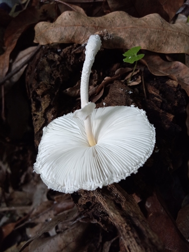 Der 2–8 cm breite Hut ist weiß gefärbt. Die Form ist meist schirmförmig, kegelförmig, andere.