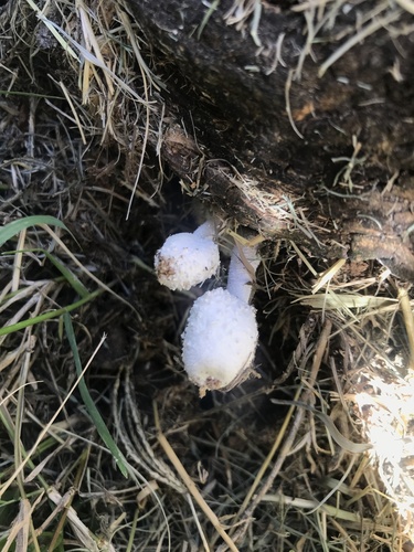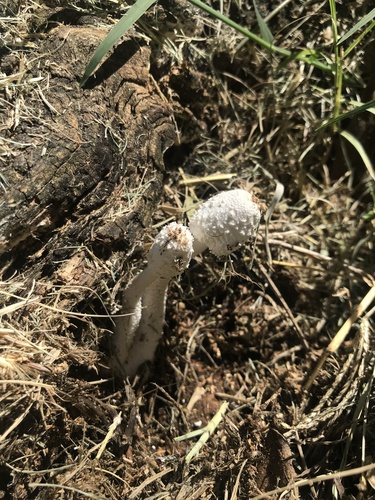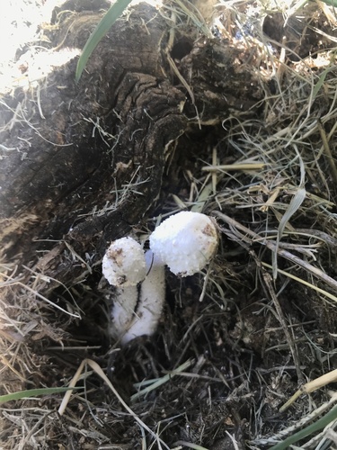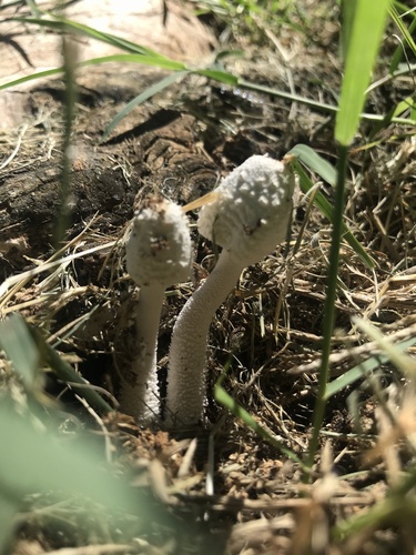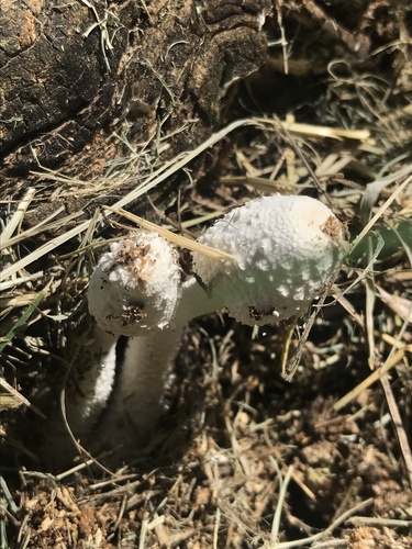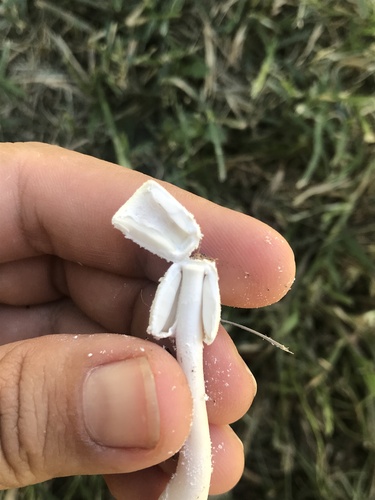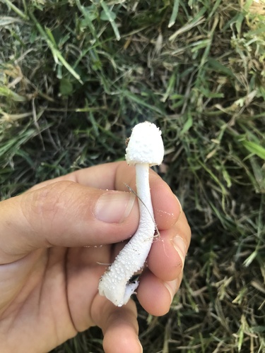 Der Stiel ist weiß-orange-braun. Besondere Merkmale: flocken, Ring, hohl, Wurzelbasis, knollige Basis.
