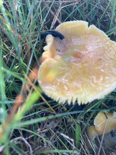 Der Stiel ist gelb-orange. Besondere Merkmale: faserig, hohl, Wurzelbasis.
