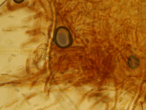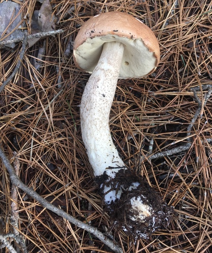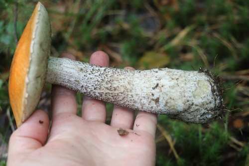 Der Stiel ist braun-weiß-schwarz. Besondere Merkmale: faserig, flocken, Netz, genattert.