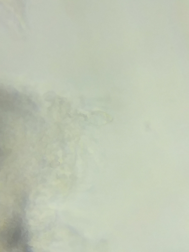 Der Stiel ist braun-schwarz-gelb-grün. Besondere Merkmale: faserig, flocken, Wurzelbasis, hohl, genattert.