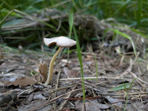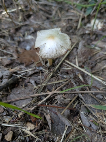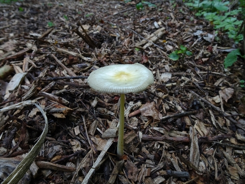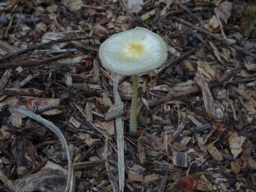 Der 1–7 cm breite Hut ist gelb-weiß gefärbt. Die Form ist meist schirmförmig, andere, kegelförmig, geriefter Hut. Er ist hygrophan (Die Hutfarbe ändert sich bei Feuchtigkeit).