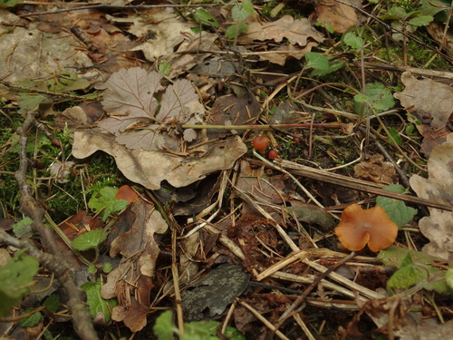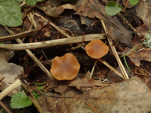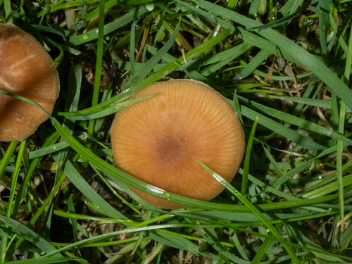 Der 1–7 cm breite Hut ist braun-orange-rot gefärbt. Die Form ist meist schirmförmig, kegelförmig, andere, geriefter Hut. Er ist hygrophan (Die Hutfarbe ändert sich bei Feuchtigkeit).