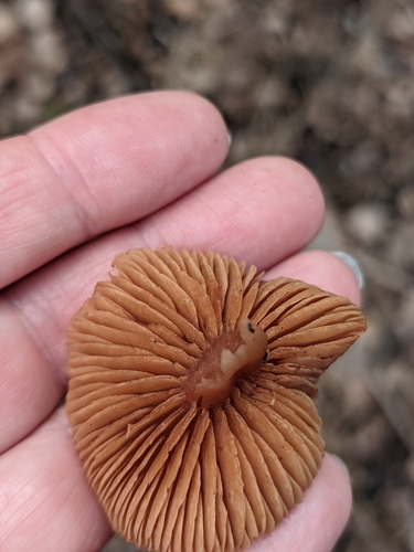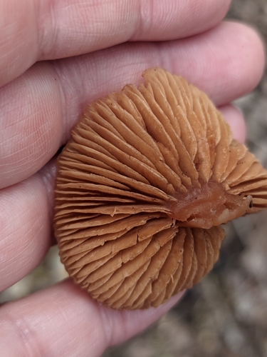 Die Unterseite zeigt Farben von orange/braun/rot. Sie sind angewachsen, frei.