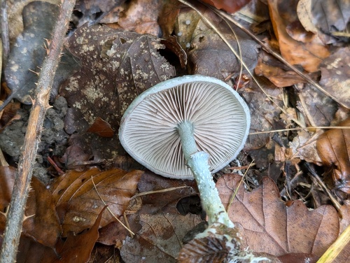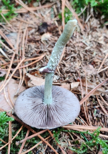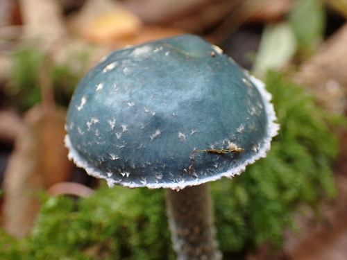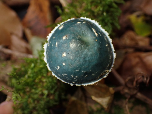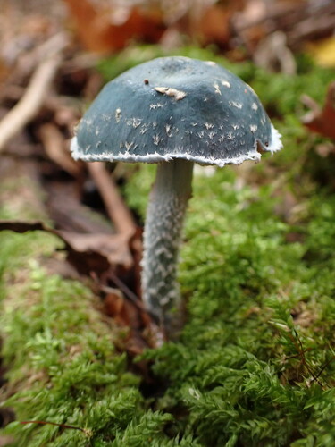 Der Stiel ist blau-grün. Besondere Merkmale: faserig, Ring, Wurzelbasis, hohl, genattert, flocken.