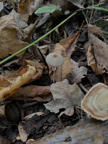 Der 1–5 cm breite Hut ist grau-weiß-braun-orange gefärbt. Die Form ist meist andere, schirmförmig, kegelförmig, geriefter Hut. Er ist hygrophan (Die Hutfarbe ändert sich bei Feuchtigkeit).