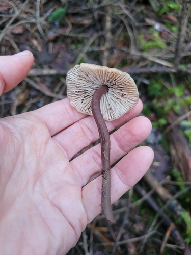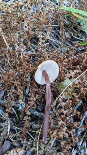 Der Stiel ist braun-rosa-rot. Besondere Merkmale: faserig, Wurzelbasis, hohl.