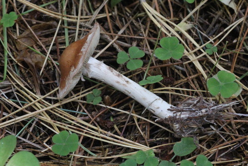 Der Stiel ist weiß-gelb-braun. Besondere Merkmale: flocken, knollige Basis, Wurzelbasis, hohl, faserig.