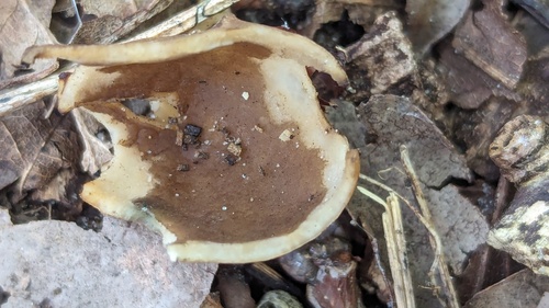 Der Stiel ist weiß-braun-orange-rot-gelb-grau. Besondere Merkmale: brüchig, hohl, Wurzelbasis.