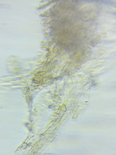 Der Stiel ist braun-blau-orange-gelb. Besondere Merkmale: faserig, genattert, Ring.