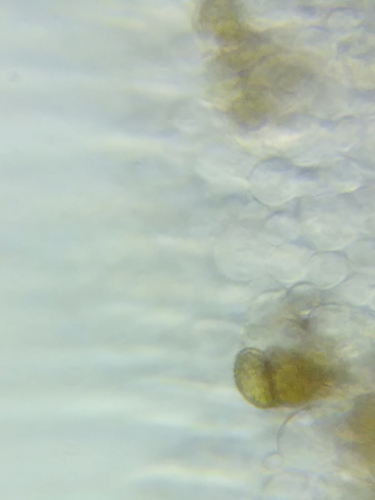 Die Unterseite zeigt Farben von braun/blau. Sie sind angewachsen.