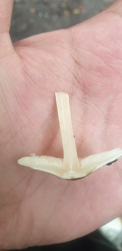 Der Stiel ist orange-braun-rosa-weiß-gelb. Besondere Merkmale: Ring, faserig, flocken, hohl, Wurzelbasis.