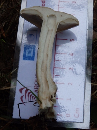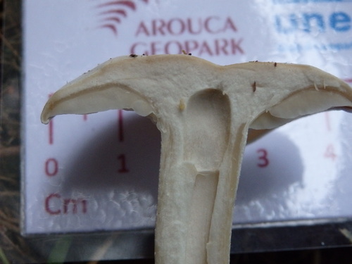 Der Stiel ist weiß-gelb. Besondere Merkmale: faserig.