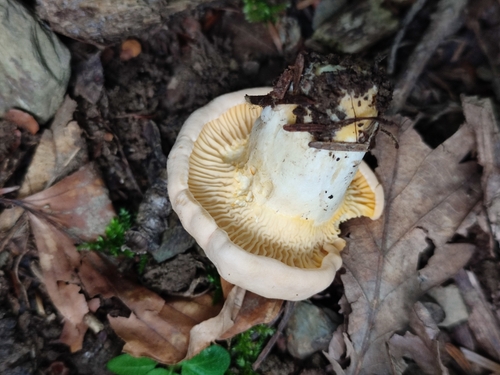 Die Unterseite zeigt Farben von gelb/weiß. Sie sind angewachsen, herablaufend.