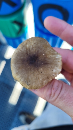 Der 2–9 cm breite Hut ist braun-rosa-grau-orange-gelb gefärbt. Die Form ist meist schirmförmig, andere, trichterförmig, geriefter Hut. Er ist hygrophan (Die Hutfarbe ändert sich bei Feuchtigkeit).