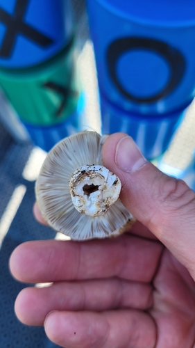 Die Unterseite zeigt Farben von weiß/gelb/grau. Sie sind angewachsen.