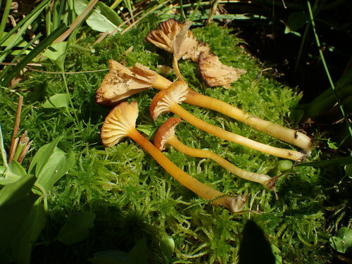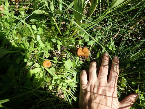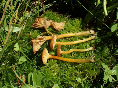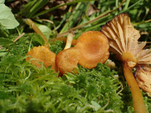 Der 1–4 cm breite Hut ist rot-orange gefärbt. Die Form ist meist trichterförmig. Er ist hygrophan (Die Hutfarbe ändert sich bei Feuchtigkeit).