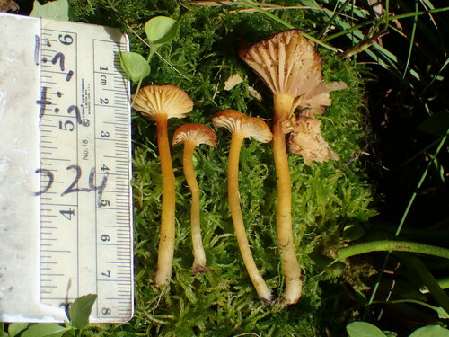 Der Stiel ist gelb-rot-orange. Besondere Merkmale: faserig, flocken, hohl, Wurzelbasis.