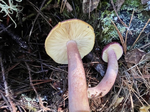 Der Stiel ist rot-weiß-gelb-orange. Besondere Merkmale: faserig, flocken, Wurzelbasis, genattert.