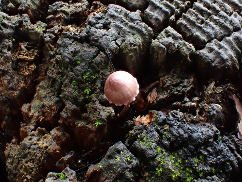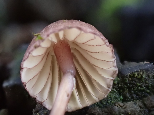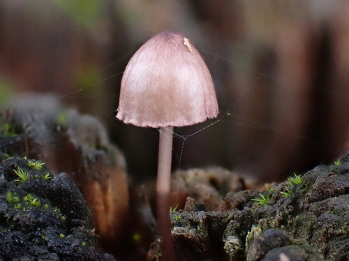 Der 1–3 cm breite Hut ist blau-rosa-braun-grau gefärbt. Die Form ist meist kegelförmig, andere, geriefter Hut. Er ist hygrophan (Die Hutfarbe ändert sich bei Feuchtigkeit).