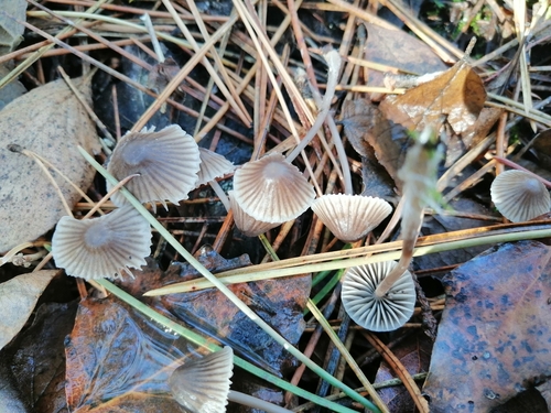 Der 1–4 cm breite Hut ist braun-grau-weiß gefärbt. Die Form ist meist kegelförmig, schirmförmig, andere, geriefter Hut. Er ist hygrophan (Die Hutfarbe ändert sich bei Feuchtigkeit).