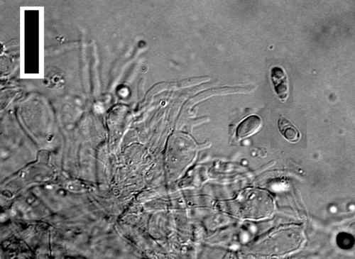 Der Stiel ist gelb-braun. Besondere Merkmale: faserig, hohl, Wurzelbasis.