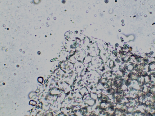 Das Sporenpulver ist weiß.