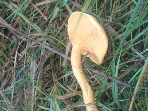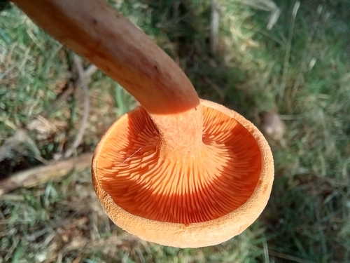 Die Unterseite zeigt Farben von orange/gelb. Sie sind angewachsen, herablaufend.