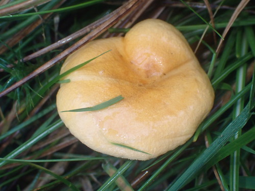 Der 2–15 cm breite Hut ist orange-gelb gefärbt. Die Form ist meist trichterförmig, schirmförmig, andere. Er ist hygrophan (Die Hutfarbe ändert sich bei Feuchtigkeit).