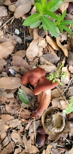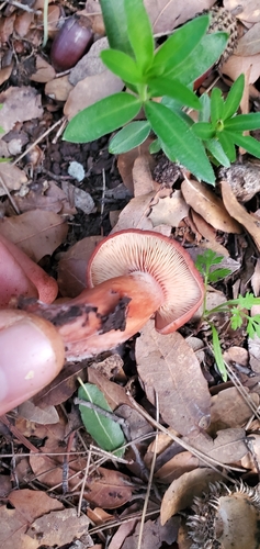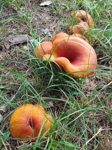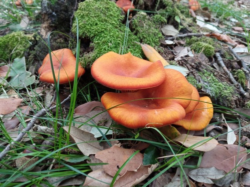 Die Unterseite zeigt Farben von orange/gelb/braun/rot. Sie sind herablaufend, angewachsen.