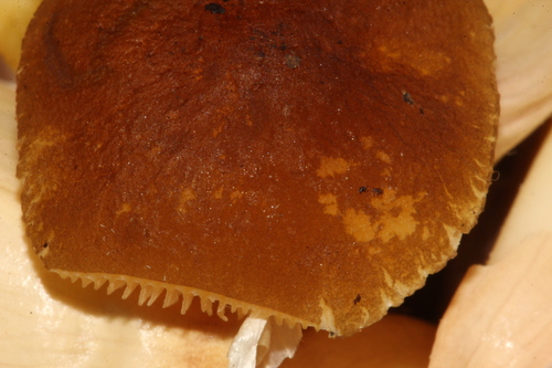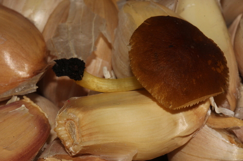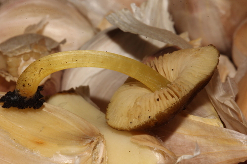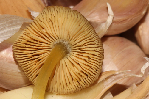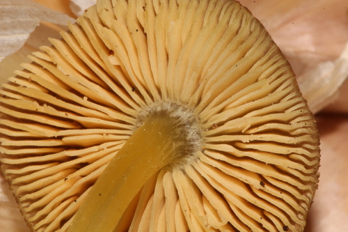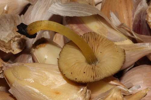 Der Stiel ist gelb. Besondere Merkmale: faserig, knollige Basis.