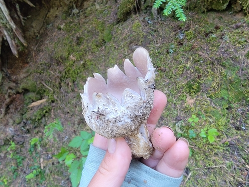 Die Unterseite zeigt Farben von rosa/blau/weiß. Sie sind angewachsen.