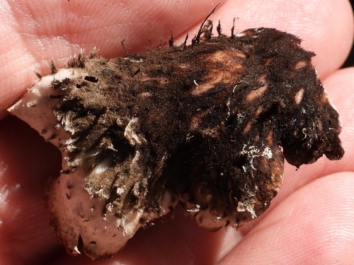 Der 1–99 cm breite Hut ist braun-grau gefärbt.