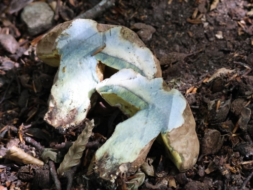 Die Unterseite zeigt Farben von gelb/grün. Sie sind angewachsen.