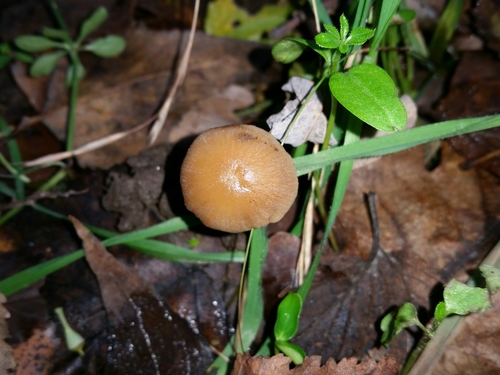 Der 1–9 cm breite Hut ist braun-gelb-rot-orange gefärbt. Die Form ist meist schirmförmig, andere, geriefter Hut. Er ist hygrophan (Die Hutfarbe ändert sich bei Feuchtigkeit).