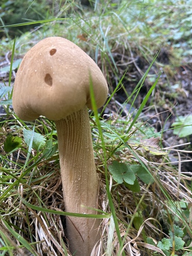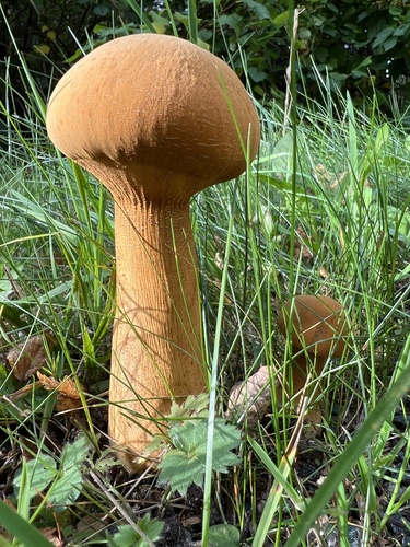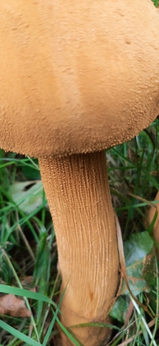 Der Stiel ist orange-braun-gelb-rot. Besondere Merkmale: Ring, faserig, flocken, Wurzelbasis, genattert.