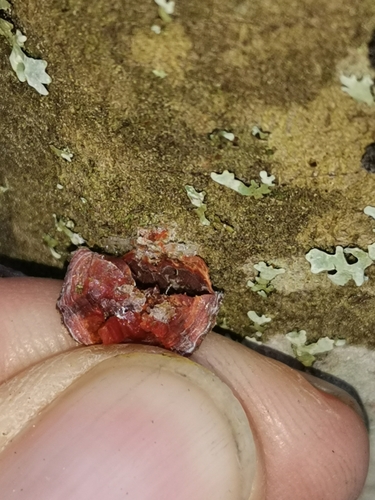 Der 2–10 cm breite Hut ist rot-orange gefärbt.
