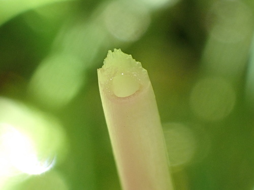 Der Stiel ist braun-orange-grau-weiß. Besondere Merkmale: faserig, brüchig, hohl.