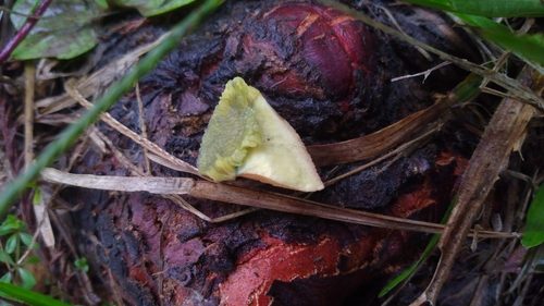 Der Stiel ist braun-rot-orange-gelb. Besondere Merkmale: faserig, brüchig, Wurzelbasis.