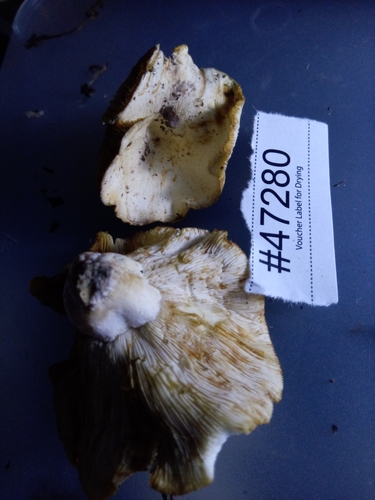 Die Unterseite zeigt Farben von grün/weiß/blau. Sie sind angewachsen, herablaufend.