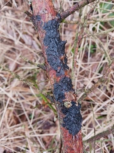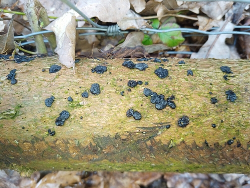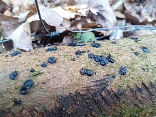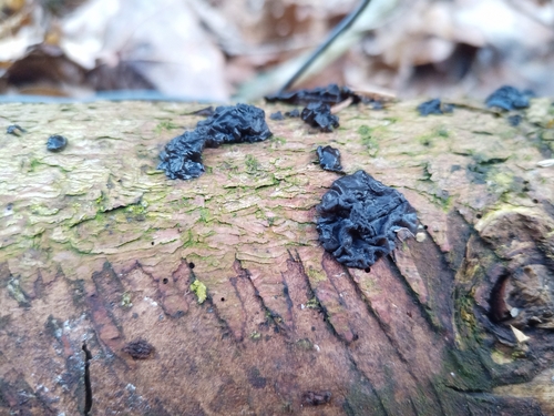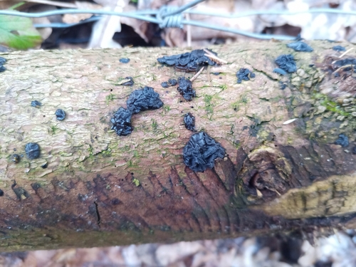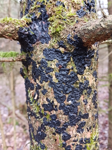 Der Teerflecken-Drüsling (Exidia pithya) ist ein Pilz mit dem Speisewert ungenießbar. Die Hauptsaison erstreckt sich von Januar bis Dezember. Er wächst bevorzugt auf Holz.