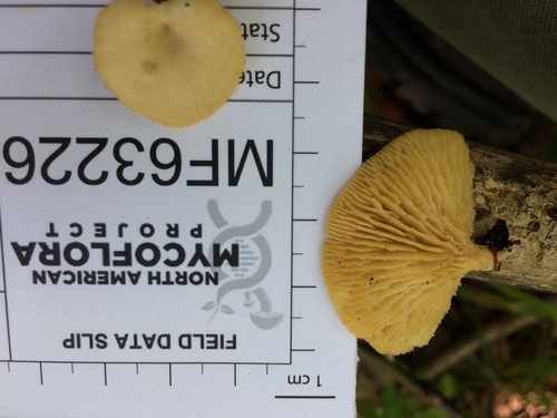 Der 3–8 cm breite Hut ist gelb-weiß-orange gefärbt. Die Form ist meist schirmförmig. Er ist hygrophan (Die Hutfarbe ändert sich bei Feuchtigkeit).