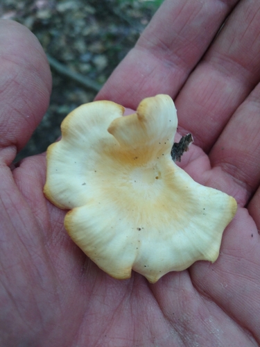 Die Unterseite zeigt Farben von gelb/weiß. Sie sind angewachsen, herablaufend.