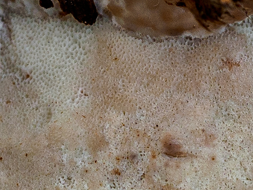 Der Getropfter Saftporling (Calcipostia guttulata) ist ein Pilz mit dem Speisewert ungenießbar. Die Hauptsaison erstreckt sich von Januar bis Dezember. Er wächst bevorzugt auf Holz. Ein charakteristisches Merkmal ist seine Hygrophanität (Änderung der Hutfarbe bei Nässe).